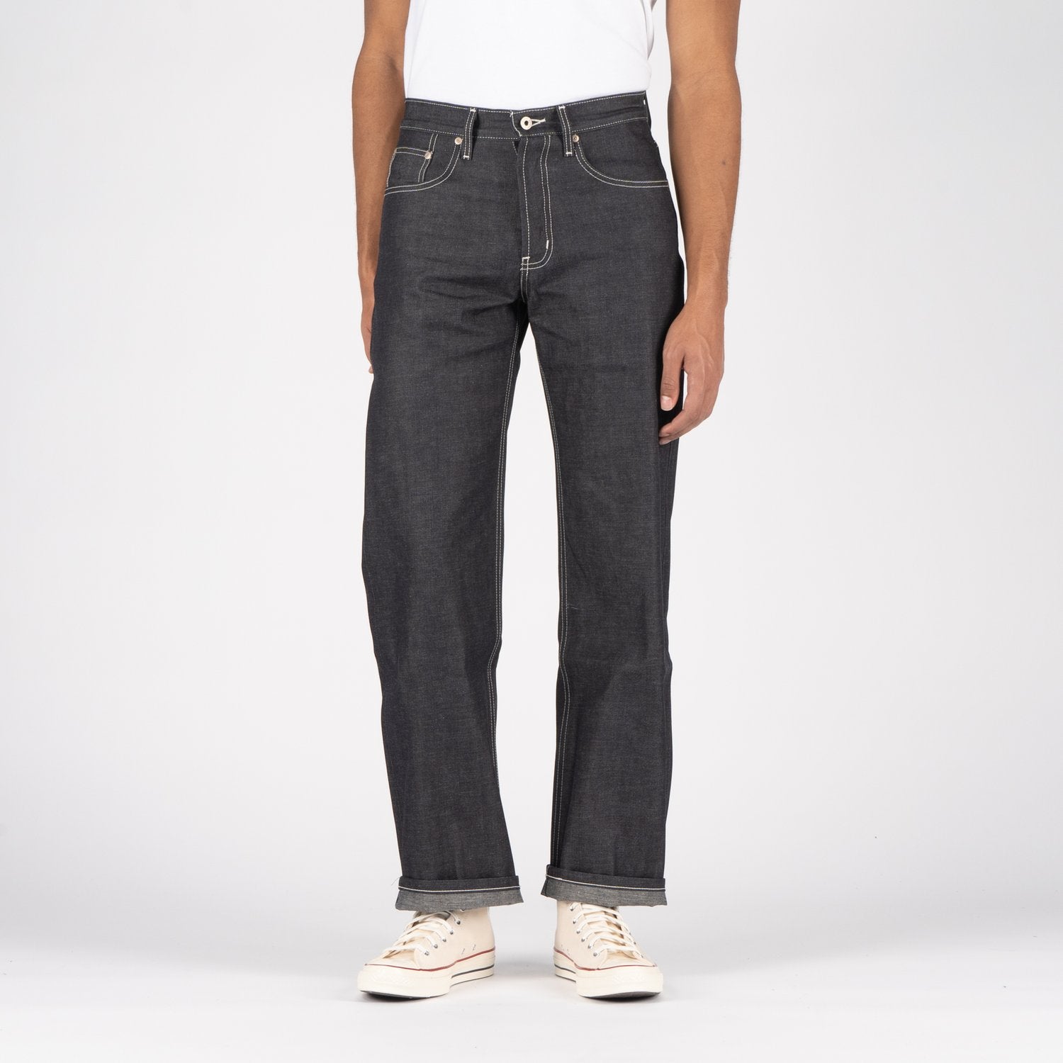 True Guy - Iceberg SelvedgePerson wearing white pants and black sneakers on a light gray background