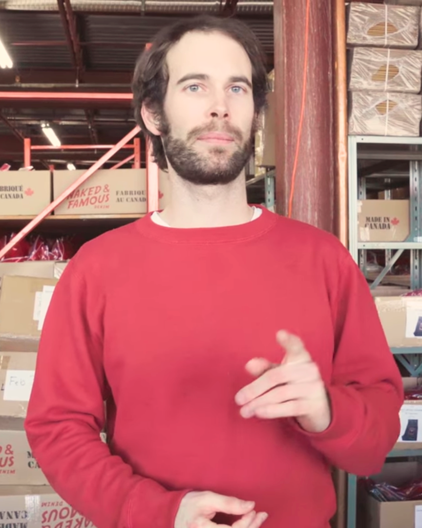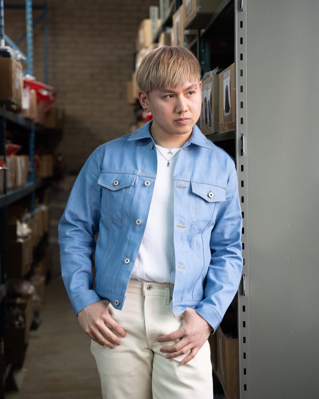 Jovon manages wholesale packing at the Naked & Famous Denim MTL warehouse and DJs under the name JOVONCHY. His style reflects a streetwear sensibility: graphic tees, silver jewellery, facial piercings, sneakers, and Doc Martens. Practical for city biking but equally at home in the nightlife scene.