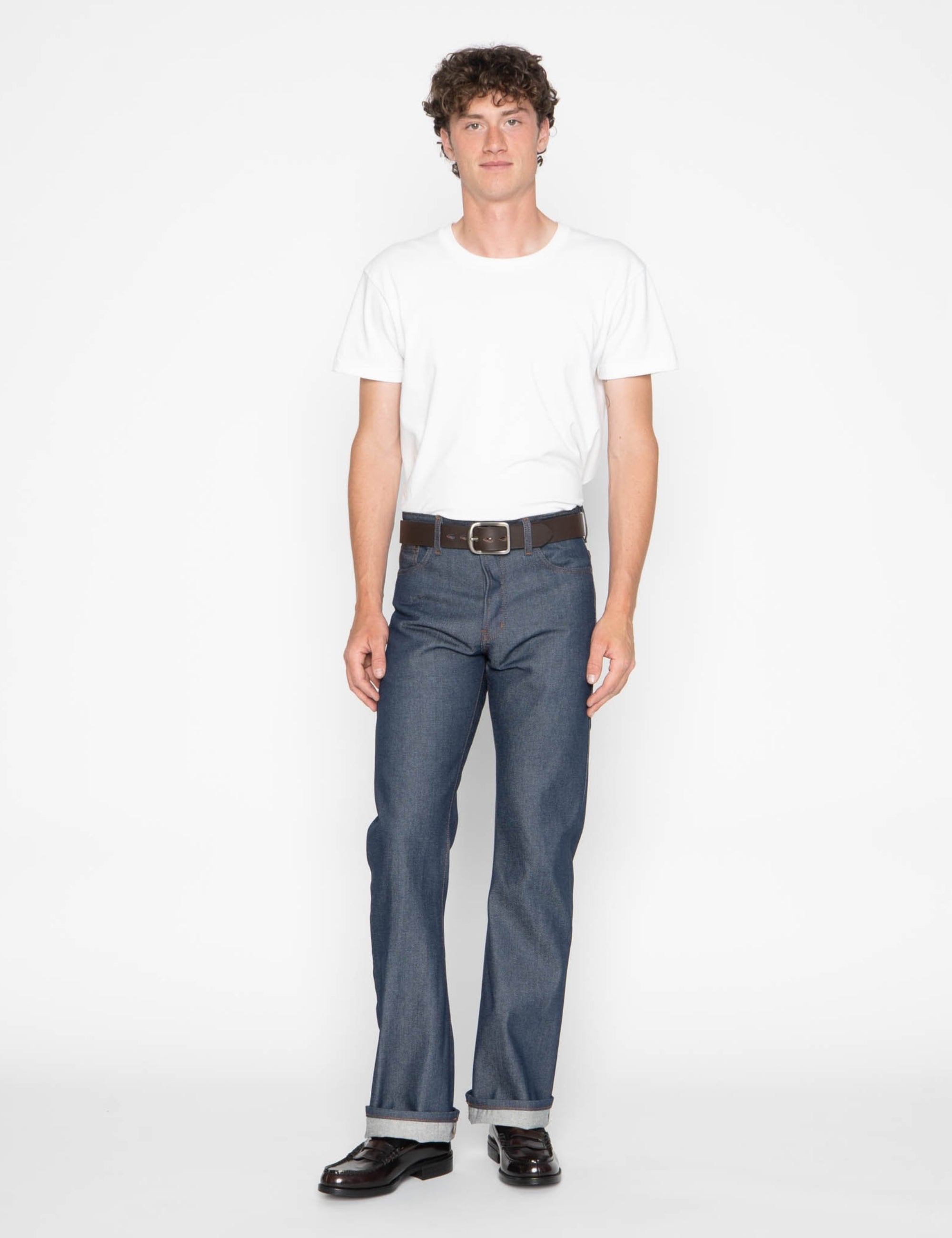 Straight leg fit with a regular rise along with extra room in the seat and thigh that falls straight from knee to hem.