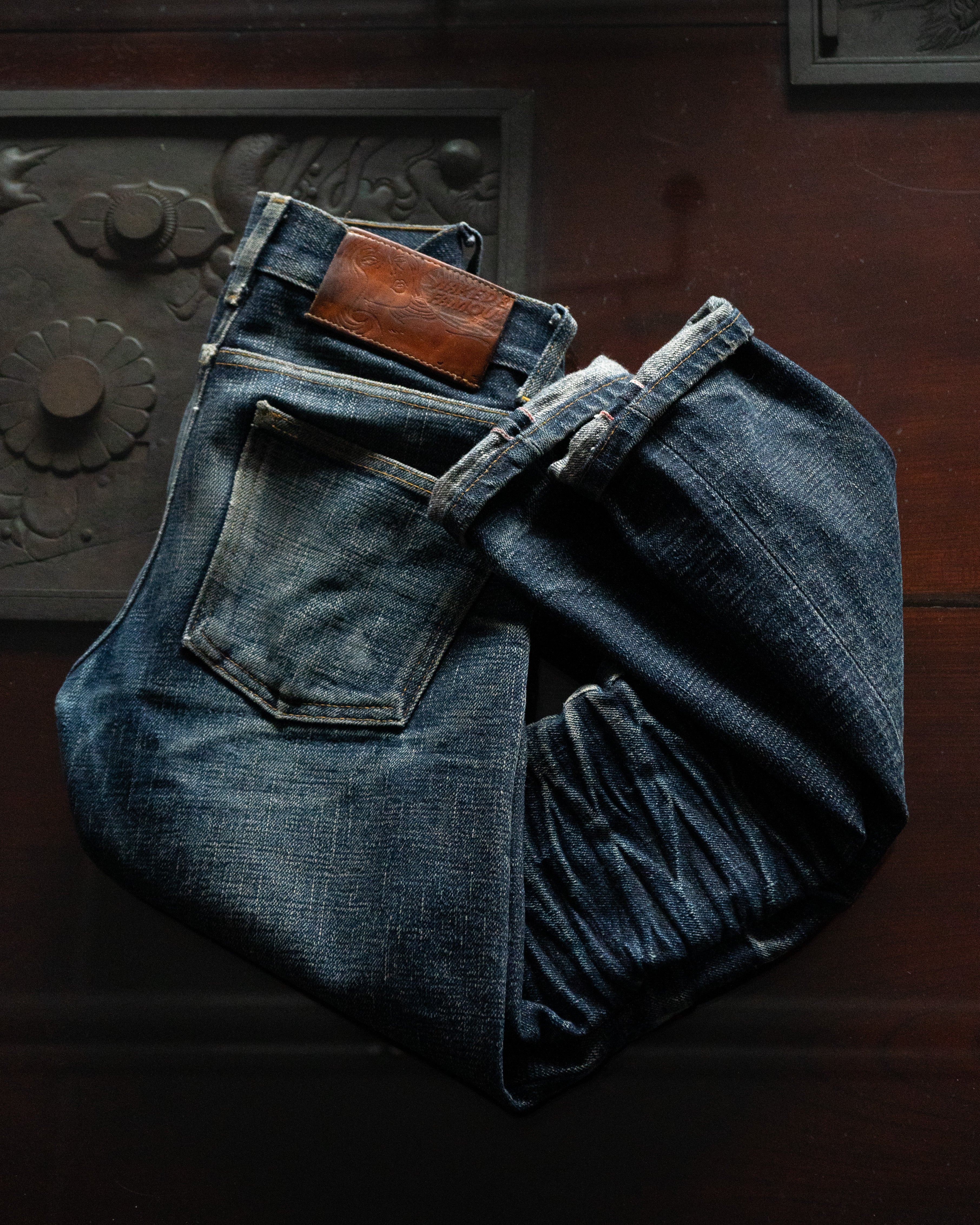 Our jeans are made from raw, unwashed denim—you get to decide their fate. The more you wash them, the softer and paler they become. The less you wash, the longer they hold their rigid feel and deep indigo color.