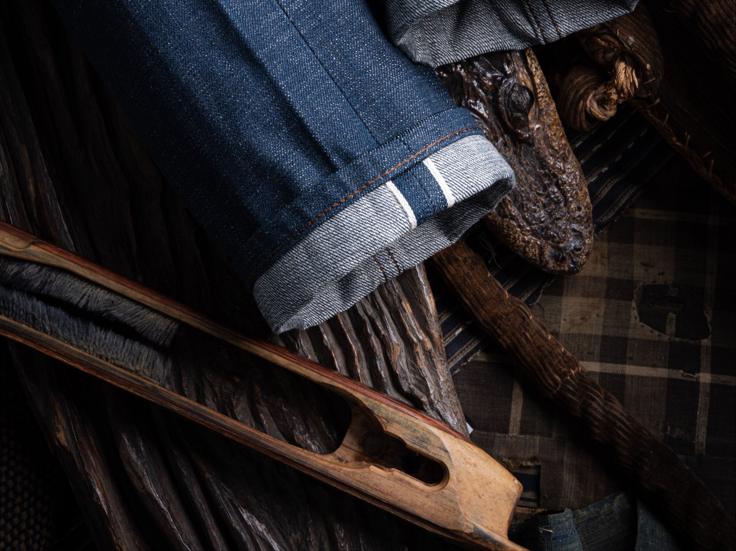 Because shuttle looms weave under lower tension, the fabric often develops subtle irregularities: slubs, yarn shifts, and surface texture that can’t be replicated on modern industrial looms. The width is narrower, usually around 30 inches, and the result is a self-finished edge called the selvedge. Far from decorative, it’s structural proof of traditional shuttle weaving.