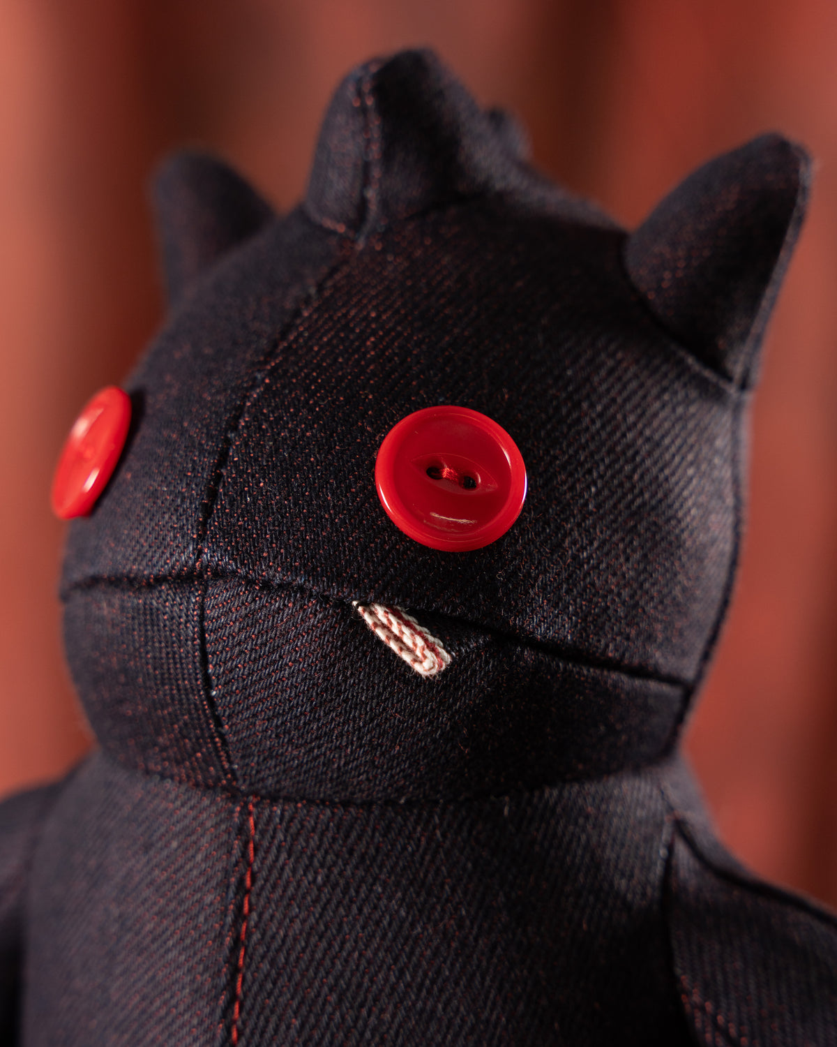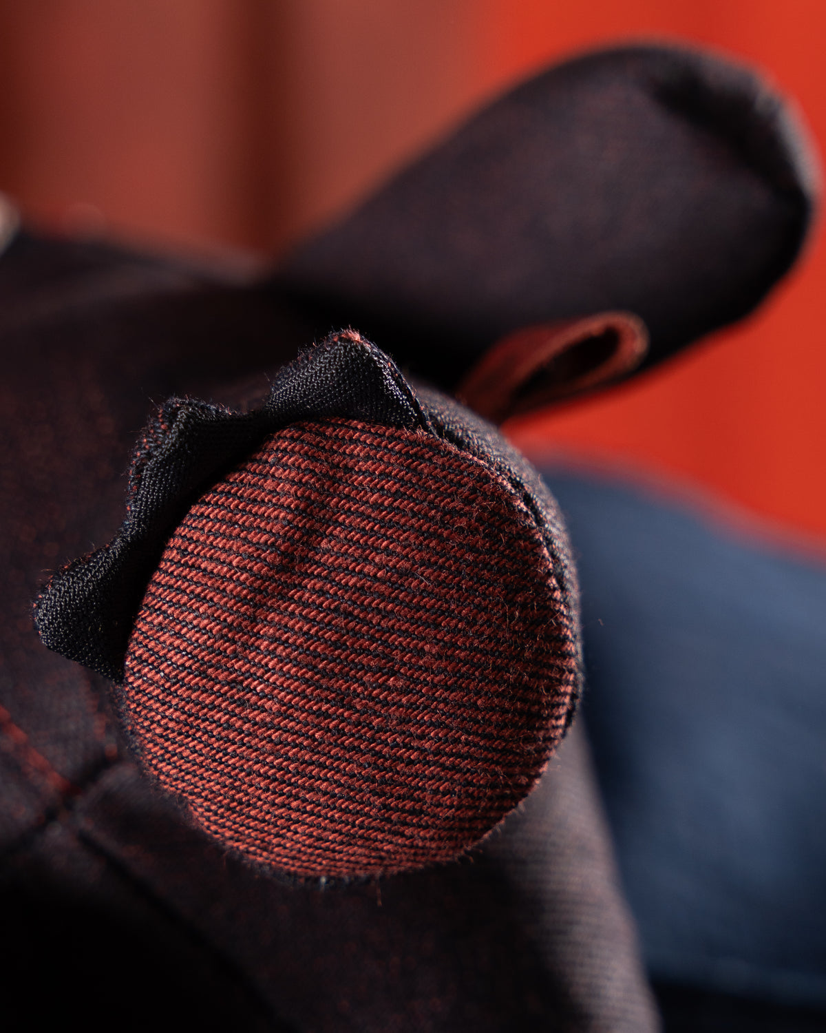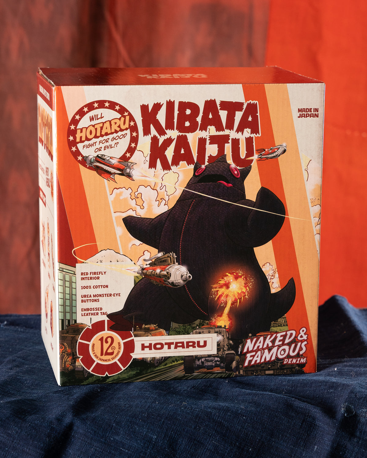 Hotaru is made from Firefly Indigo x Red Japanese selvedge denim with a bright red weft that shows through the twill weave. Handle and squeeze to create your own unique fades.