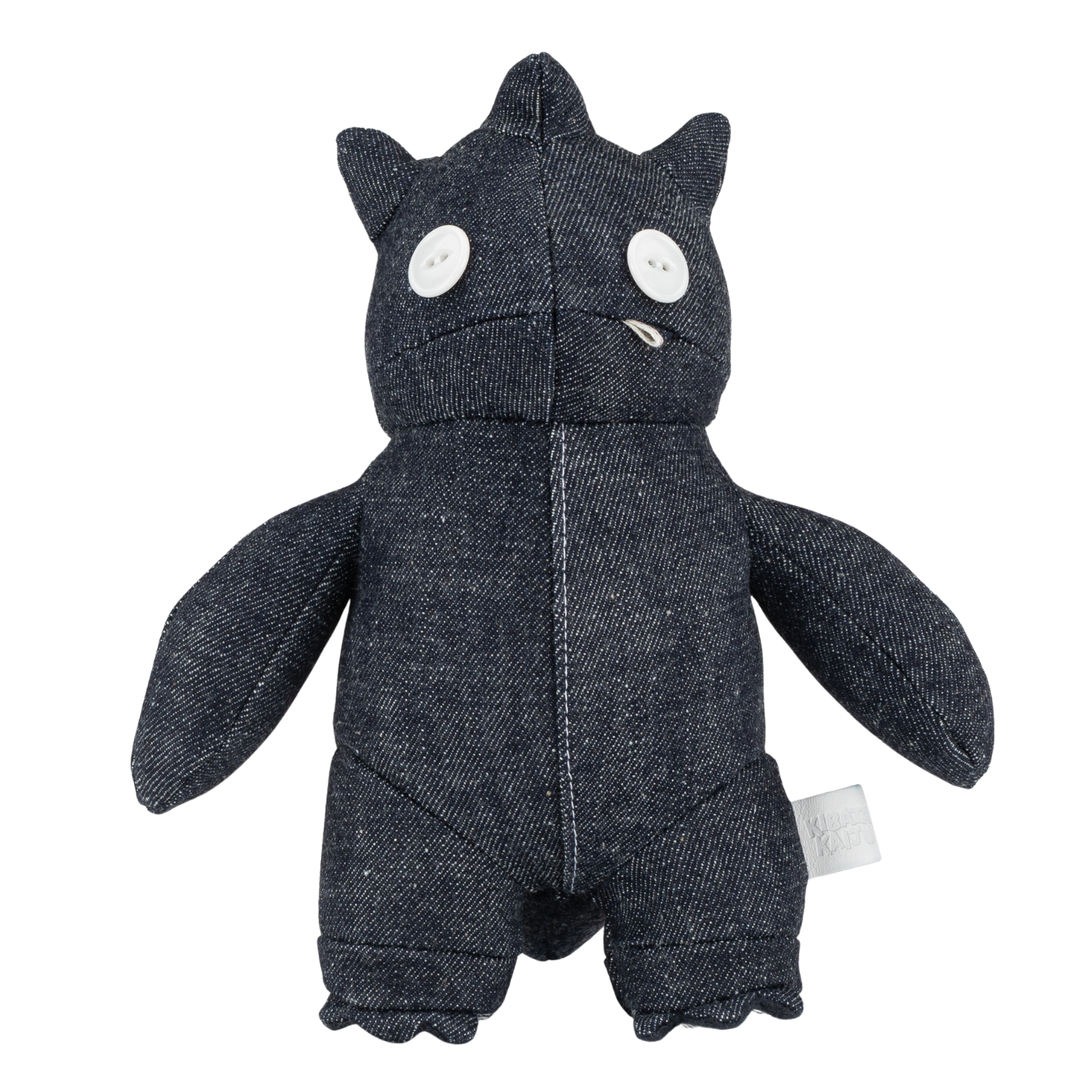 Kon Kon stands approximately 10 inches tall and is designed to be free-standing. The interior is filled with glass beads, providing weight, balance, and stability. Each piece is presented in a collector box featuring original illustrated artwork created specifically for the Kibata Kaiju series.