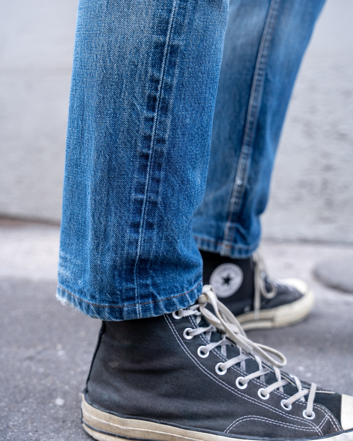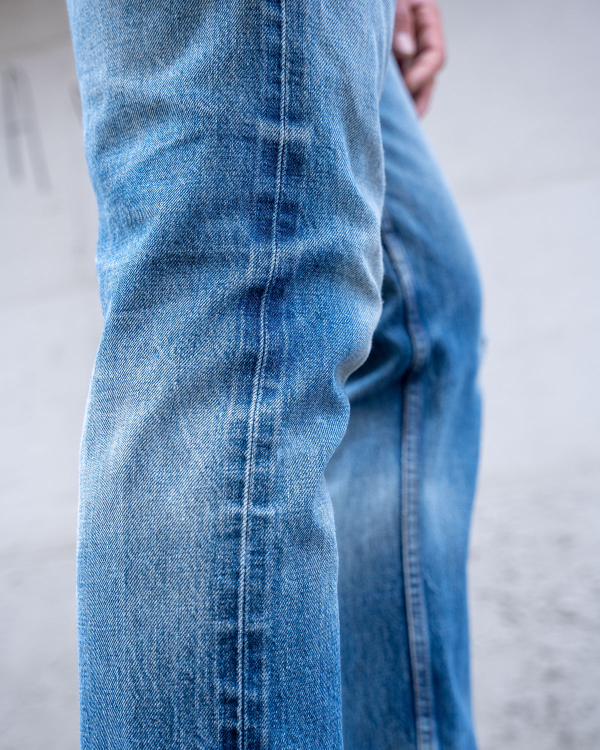 The Strong Guy is a relaxed straight fit; high rise, fuller in the seat and thigh that falls to a wide leg opening.