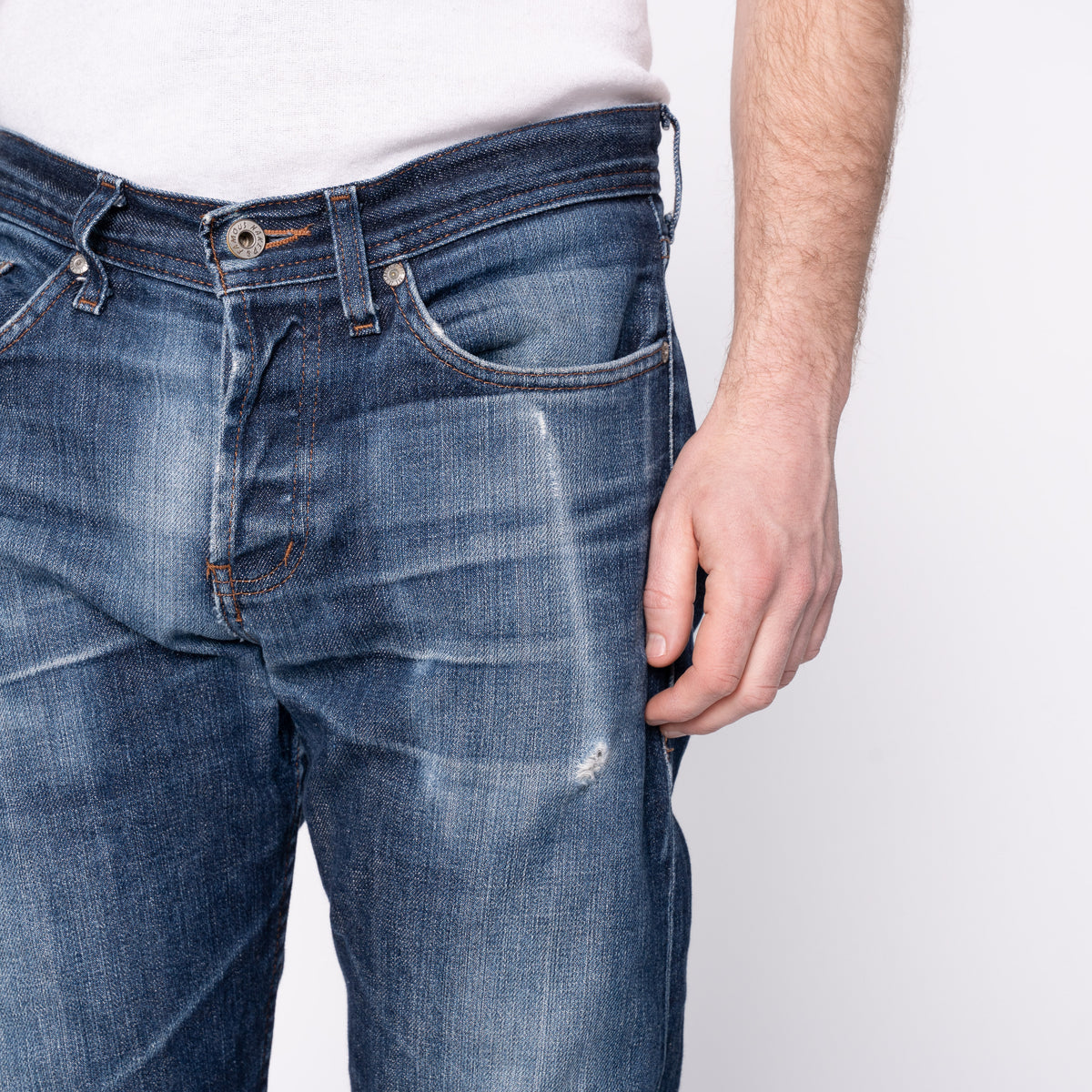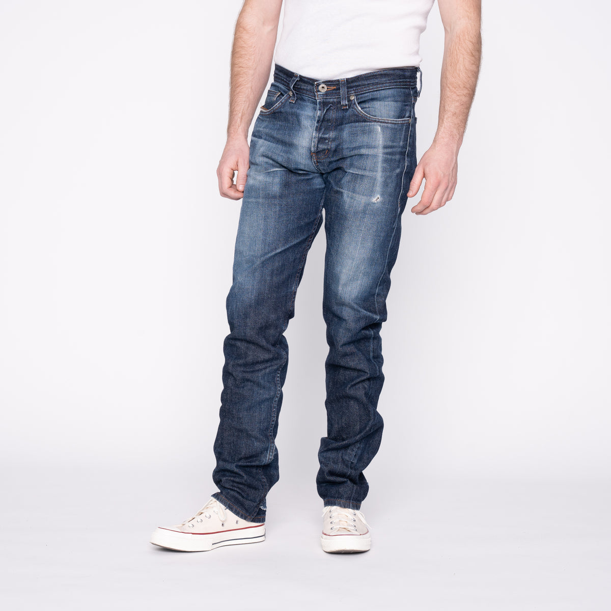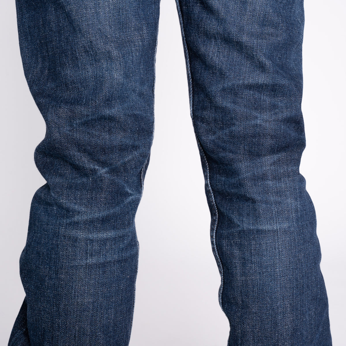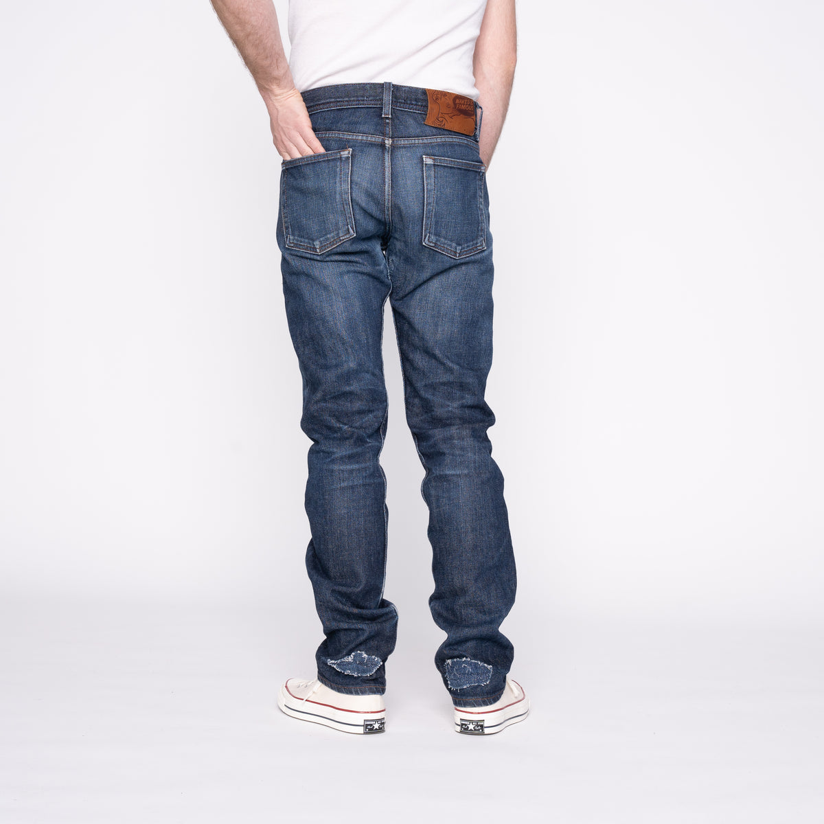 The Stretch Selvedge is one of the most popular core selvedge fabrics in Naked & Famous Denim's lineup. Woven on vintage shuttle looms in a right hand twill construction, this 12.5oz Japanese selvedge denim combines the comfort of stretch denim with the beauty and fading potential of raw denim. The 2% elastane eliminates the break-in period and gives you a continual level of comfort that you can't experience in 100% cotton jeans. Other details include contrast stitching, full grain English tan leather patch, red selvedge ID, silver metallic buttons and rivets. The Super Guy is a slim tapered fit; medium rise, slim thigh and taper from the knee to hem.